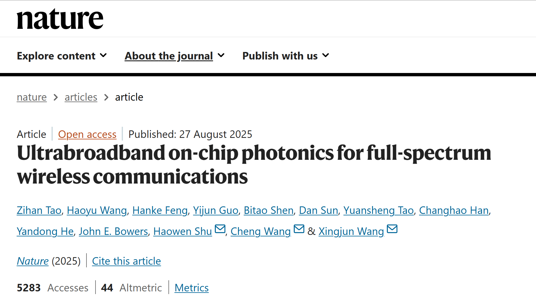 首创全频段6G无线通信芯片。相关成果发表在 Nature,冯寒珂教授为共同第一作者,王骋教授为通讯作者。